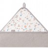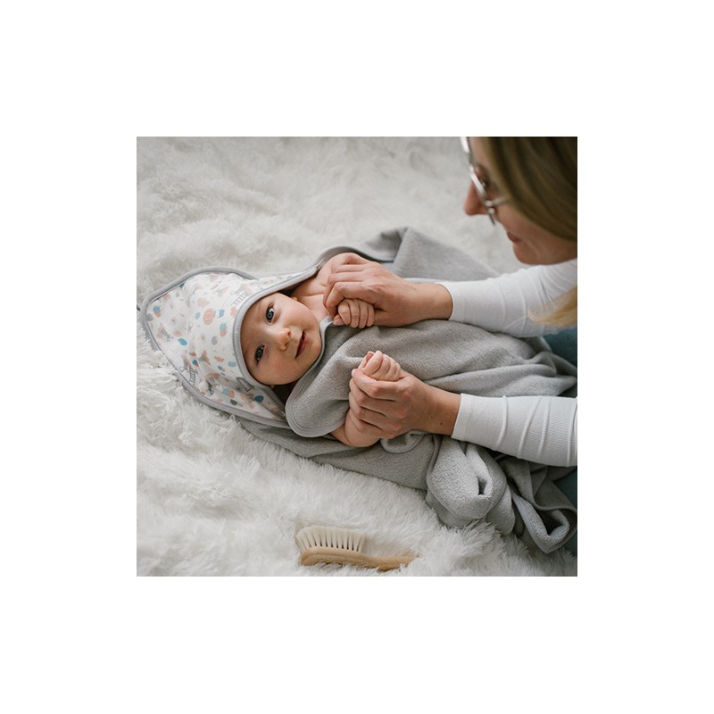 Okrycie kąpielowe z kapturkiem wykonaliśmy z wysokiej jakości, grubej i miękkiej, 100% bawełny. Ręcznik doskonale absorbuje wodę, a wszyty kapturek chroni mokrą główkę Twojego dziecka przed wychłodzeniem. Duży rozmiar ręcznika pozwoli Ci dokładnie wytrzeć po kąpieli zarówno mniejsze, jak i większe dziecko.