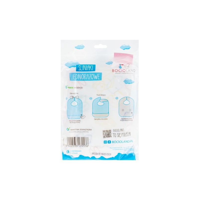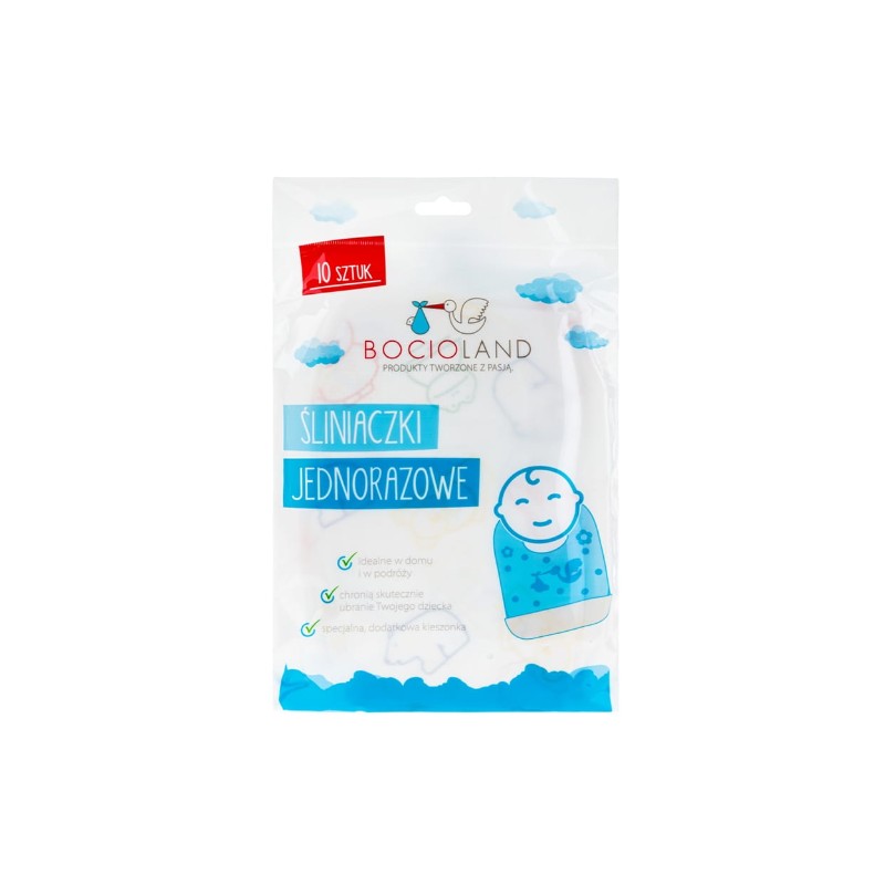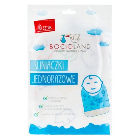 Śliniaki jednorazowe firmy Bocioland to alternatywa dla śliniaków tradycyjnych. Idealnie sprawdzają się w podróży jak i w domu. Posiadają specjalną kieszonkę która zatrzymuje resztki pokarmu i chroni przed zabrudzeniem.