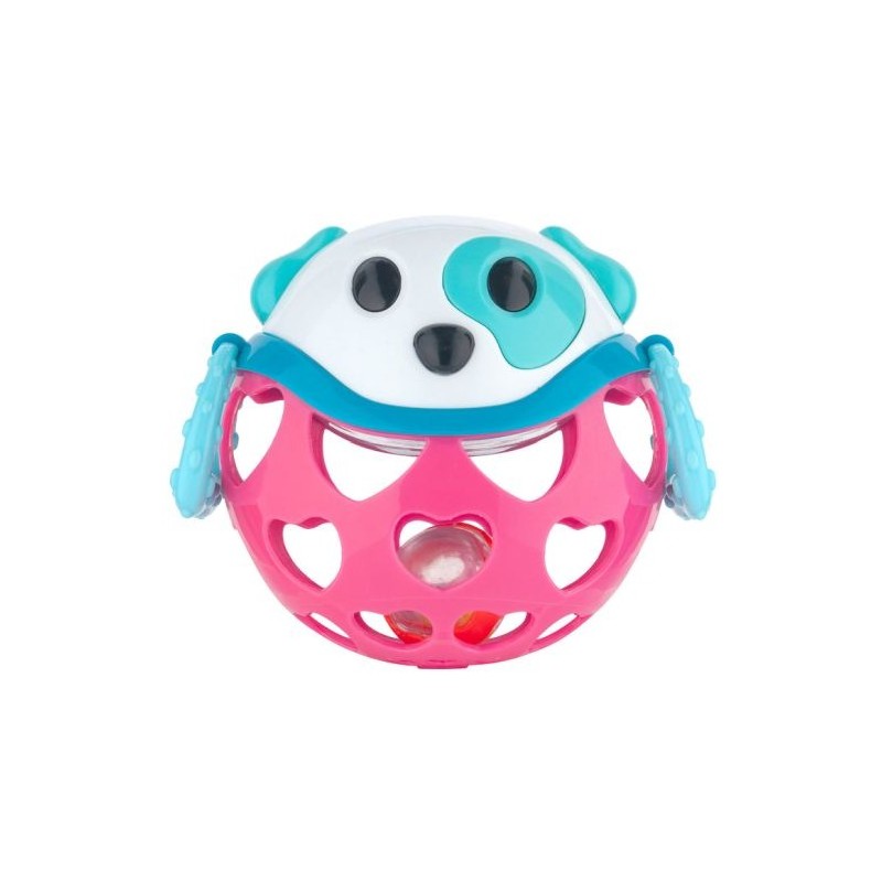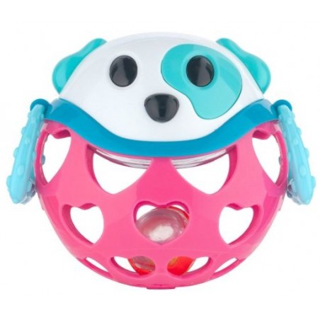Grzechotka z kolorowymi koralikami widoczna przez ażurowe elementy- wzbudzi ciekawość i zachęci do zabawy.