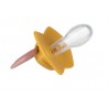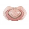 Wyjątkowo miękka gumka wymaga mniej wysiłku podczas ssania, co ułatwia akceptację smoczka przez dziecko. Gumka została wykonana w 100% z hipoalergicznego i bezpiecznego silikonu, jest bezzapachowa i bezsmakowa. Specjalnie wyprofilowana tarczka umożliwia Maluszkowi swobodne oddychanie przez nosek i minimalizuje odciskanie się smoczka na delikatnej buzi dziecka. Dodatkowe otworki wentylacyjne pozwalają skórze oddychać i zapobiegają podrażnieniom. Wygodny uchwyt smoczka ułatwia podanie go dziecku oraz pozwala na przymocowanie łańcuszka lub tasiemki, które zabezpieczą smoczek przed zgubieniem czy upadkiem na ziemię i zabrudzeniem.