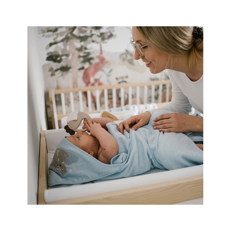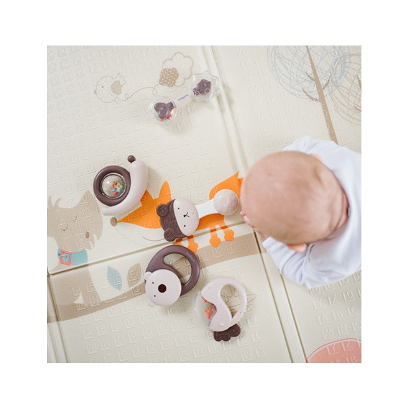 Wykonana z bezpiecznych materiałów, posiada ergonomiczny kształt, który doskonale pasuje do małych rączek. Dźwięki wydawane przez grzechotkę pobudzają słuch dziecka, a różnorodne tekstury pomagają rozwijać zmysł dotyku.