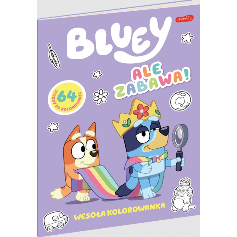 Pokoloruj uroczą suczkę Bluey (w polskiej wersji opowieści znaną także jako Blue), jej sympatyczną siostrę Bingo, a także rodziców i wszystkich innych bohaterów fantastycznego serialu! Duże i wyraźne obrazki, grube kontury, minimum szczegółów i tekstu to gwarancja dobrej zabawy nawet dla najmłodszych dzieci, które mogą kolorować obrazki, nie czytając poleceń. Zabawne teksty w klimacie serialu będą dodatkowym atutem, gdy do kolorowania włączą się rodzice, dziadkowie lub starsze rodzeństwo. Oprócz kolorowanki na rynku są już inne tytuły Bluey – w tym kartonowe książki w kształcie piesków, książka z zadaniami i scenki do wyklejania z naklejkami do wielokrotnego użytku.