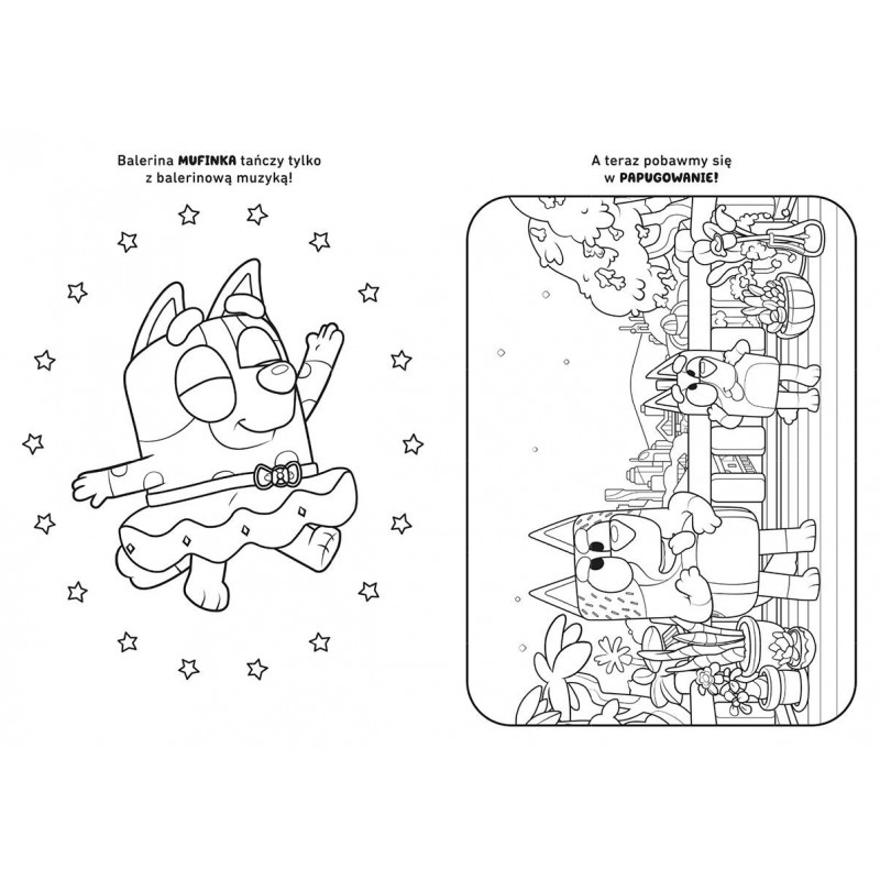 64 strony do kolorowania, a na nich bohaterowie kreskówki Bluey!