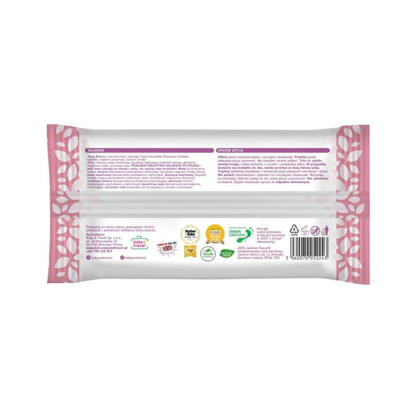 Opakowanie w 100% do recyklingu — chusteczki są przyjazne nie tylko dla skóry, ale też dla planety.