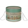 Komplet składa się z 50 drewnianych klocków w różnych kształtach i rozmiarach, ozdobionych motywem z kolekcji Little Farm i różnymi ilustracjami ze zwierzątkami. Doskonałe do zbudowania własnej farmy!