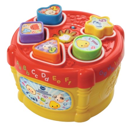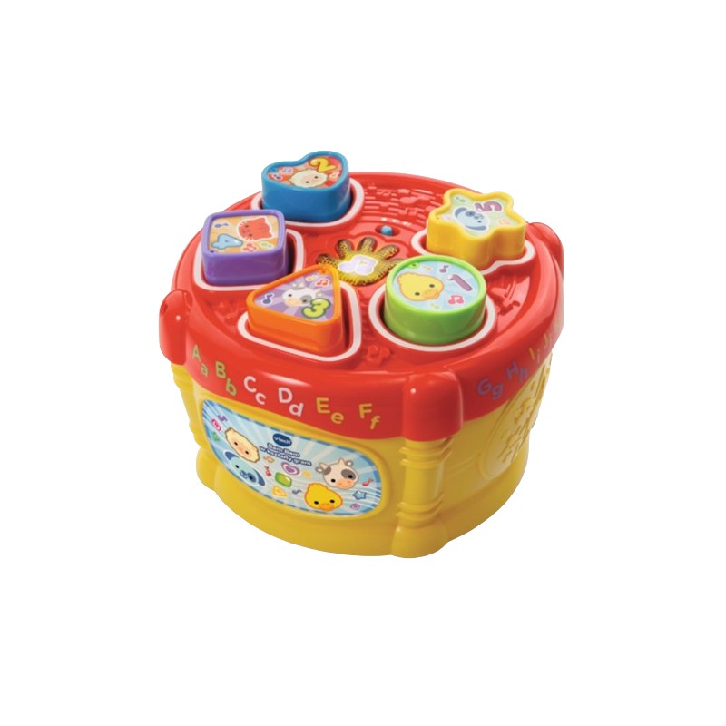 Pomaga w nauce kształtów, cyfr i nazw zwierząt. Dopasowanie kształtu do otworu wspomaga rozwój manualny dziecka. Zdejmowane wieko bębenka umożliwia wyciągnięcie wrzuconych klocków i rozpoczęcie zabawy od nowa. Możliwość zmiany stopnia czułości bębenka na uderzenia poprzez przesunięcie.