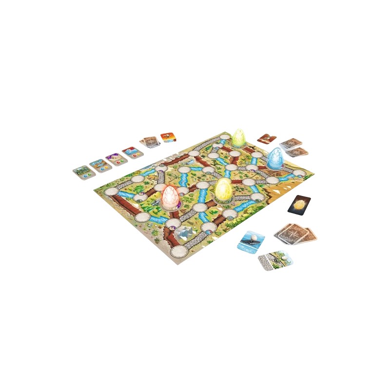Gracze zagrywają karty i przesuwają jajka po prehistorycznym świecie dinozaurów. Kiedy dotrzecie do jednej z krain, jajka pokażą prawdziwe oblicza i zaświecą unikatowymi kolorami. Czy zdołacie zapamiętać ich położenie i doprowadzić do odpowiednich miejsc?