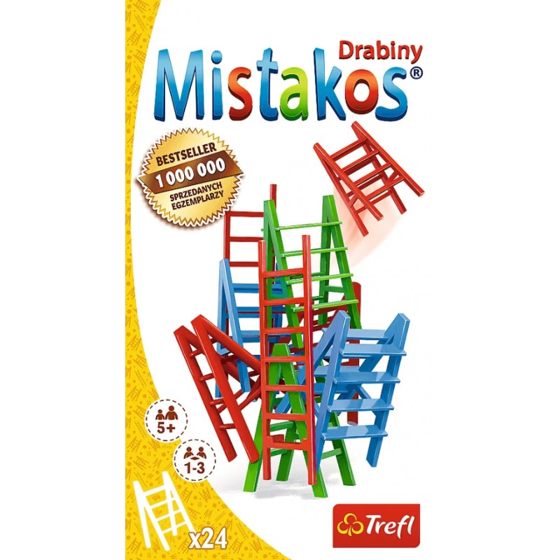 Nowa odsłona kultowej gry zręcznościowej Mistakos, tym razem z drabinami w roli głównej! Zdobądź jak najmniejszą liczbę punktów karnych lub jak najszybciej pozbądź się drabin w danym kolorze w trakcie ustawiania z nich wspólnej, imponującej konstrukcji.