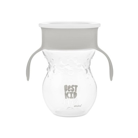 Posiada zawór uszczelniający, zapobiegający wylewaniu się płynów. Ustnik umożliwia picie z dowolnego miejsca wokół krawędzi kubka. Wygodne szerokie uchwyty oraz ergonomiczny kształt ułatwiają trzymanie kubeczka w małych rączkach. Kapsel chroni kubek przed zabrudzeniem. Łatwe, szybkie i bezproblemowe mycie. Produkt całkowicie wolny od bisfenolu A (0% BPA).