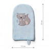 Wygodna forma rękawicy sprawdzi się podczas kąpieli, a także w codziennej pielęgnacji maluszka. Jest to dobry wybór dla dzieci z problemami skórnymi ponieważ włóknina bambusowa ma właściwości hypoalergiczne.