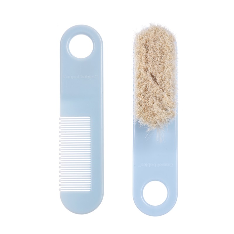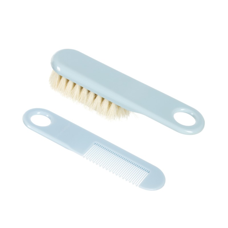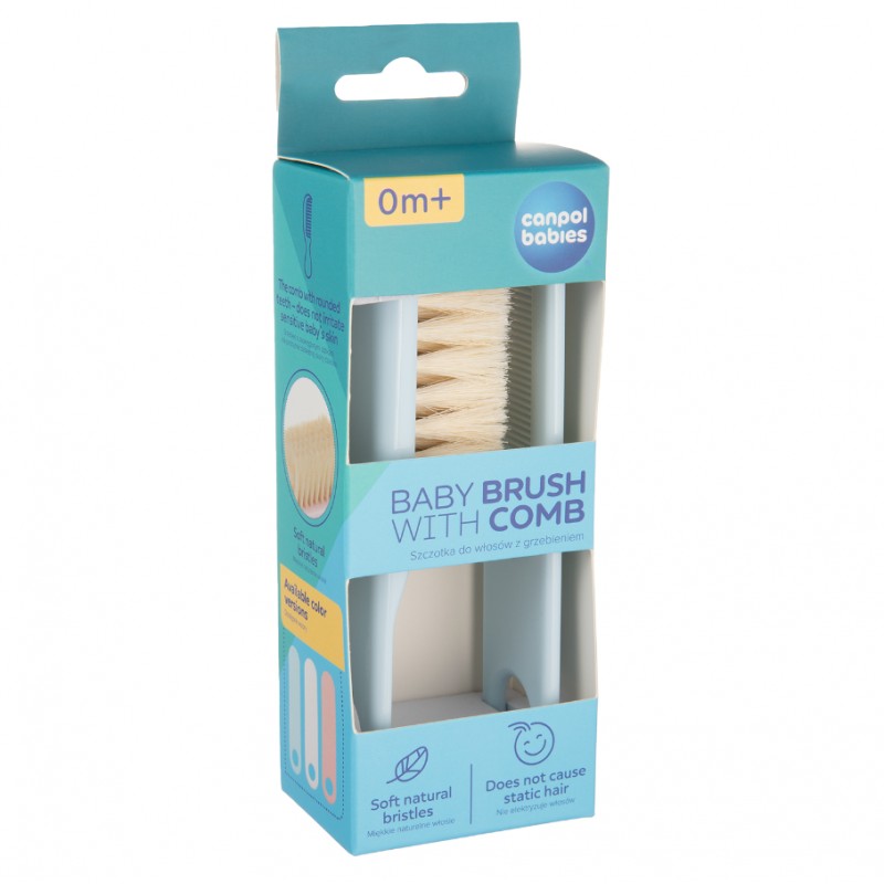 Szczotka do włosów z naturalnego, miękkiego włosia w zestawie z grzebykiem do codziennej pielęgnacji włosów dziecka.