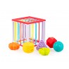 Kostka z elastycznymi ściankami kryje w swym wnętrzu całą gromadkę kolorowych klocków!