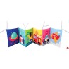 Materiałowa książeczka zabawi najmłodszych kolorowymi obrazkami.