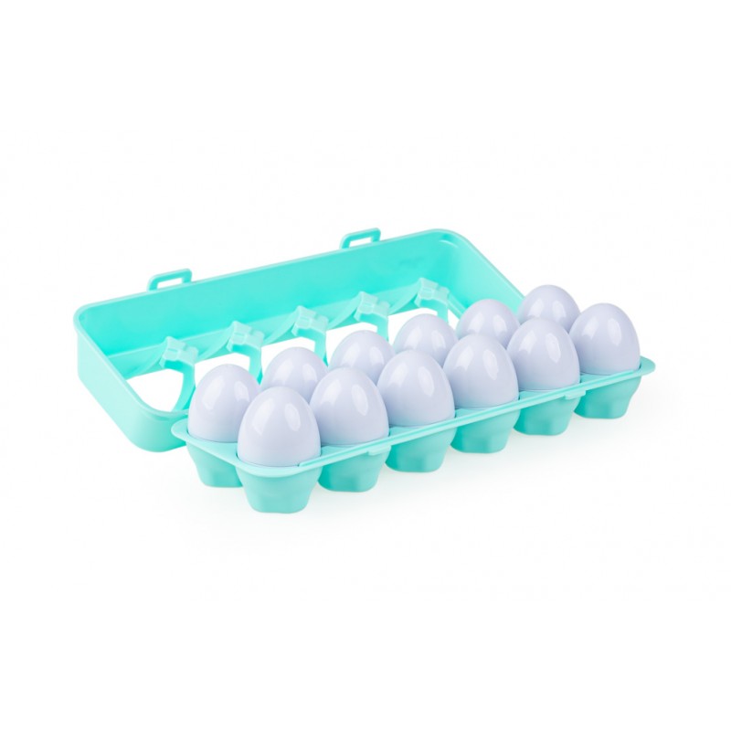 - w zestawie 12 jajek (do rozdzielenia na pół) i zamykane opakowanie na jajka w kształcie wytłaczanki;