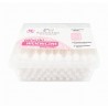 - Delikatne, bawełniane końcówki patyczków są specjalnie zaprojektowane, aby zapewnić bezpieczne i skuteczne użycie. Ich specjalny kształt chroni przed przypadkowym, zbyt głębokim wsunięciem patyczka.