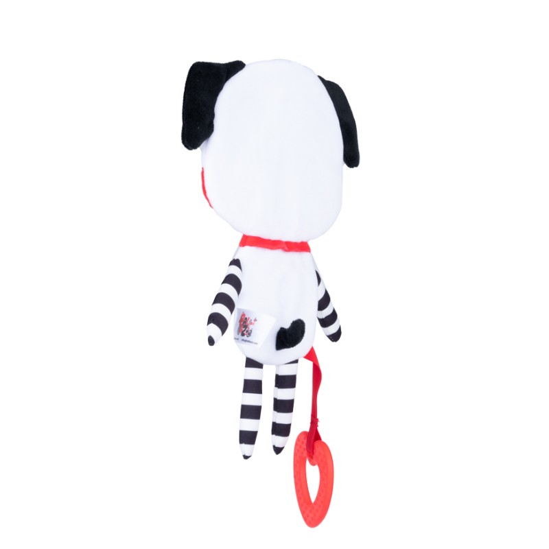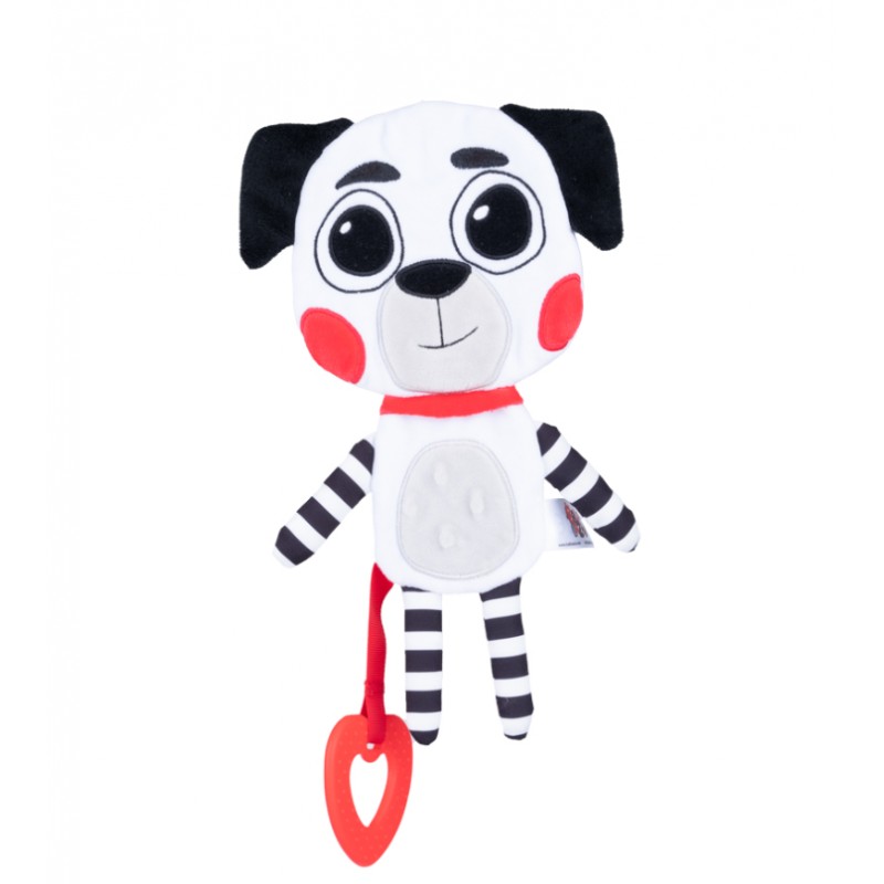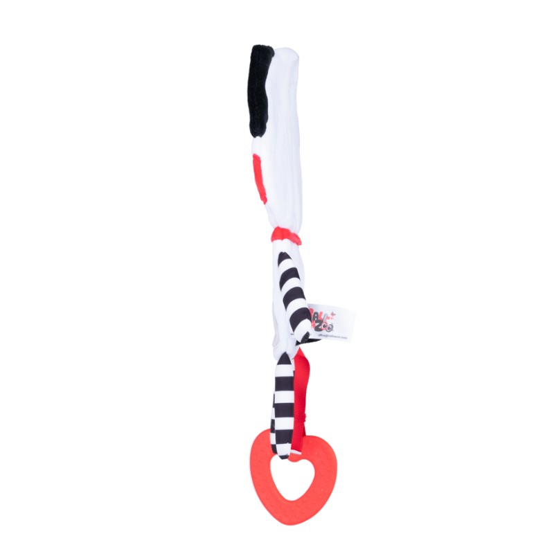 Jego ciałko uroczo szeleści, a zróżnicowane faktury materiałów, z których został wykonany, wspomagają rozwój zdolności poznawczych dziecka. Zabawkę zdobi miękki gryzak z wypustkami, który przyniesie ulgę podczas ząbkowania. Wyraziste, kontrastowe kolory zwierzaka stymulują zmysł wzroku malucha już od pierwszych dni jego życia.