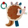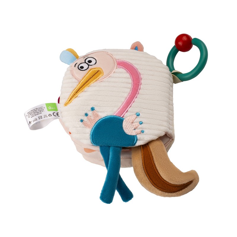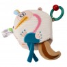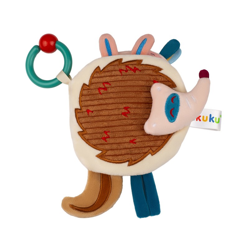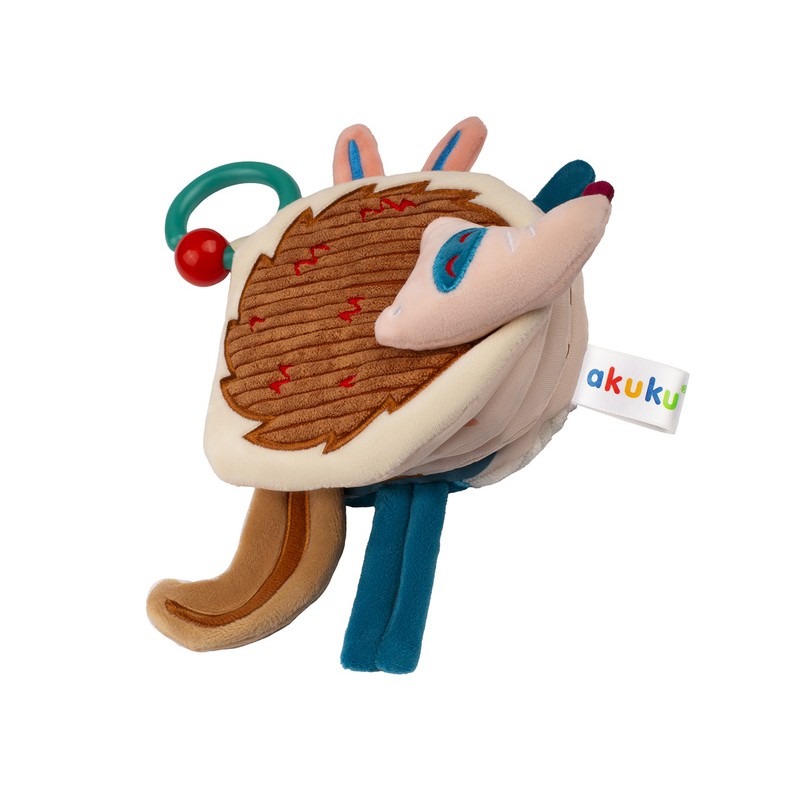 Wykonana z miłego w dotyku materiału o różnorodnej teksturze. Posiada piszczek i elementy szeleszczące. Świetnie stymuluje rozwój koordynacji wzrokowo-słuchowej i motorycznej dziecka. Kolorowe obrazki, wypukłe elementy i różne rodzaje tkanin pomagają rozwijać wyobraźnię oraz zachęcają do zabawy. Praktyczny zaczep w kształcie kółka umożliwia przypięcie książeczki do wózka, łóżeczka a nawet fotelika samochodowego.