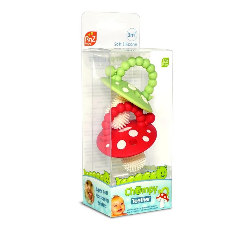 To bezpieczne logopedyczne gryzaki dla niemowląt, które doskonale radzą sobie z dolegliwościami związanymi z ząbkowaniem. Wykonane z wyjątkowo delikatnego silikonu, pokrytego opatentowanym włosiem, skutecznie łagodzą ból i opuchliznę dziąseł. Grzybki RaZbaby są znakomitymi akcesoriami do żucia, gryzienia i każdej zabawy sensorycznej, która dostymuluje jamę ustną maluszka. Zostały wykonane z wysokiej jakości materiałów wolnych od BPA, PVC, ftalanów i ołowiu. Projektanci nie zapomnieli również o wygodzie małego użytkowania. Ich ergonomia to połączenie wyprofilowanego ustnika oraz poręcznego, teksturowanego uchwytu, przez co ułatwiają maluchom ich trzymanie. RaZbaby to gwarantowana ulga podczas ząbkowania, wygoda w użyciu i bezpieczeństwo dla zdrowia Twojego dziecka. Parametry techniczne gryzaka grzybka od RaZbaby: