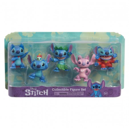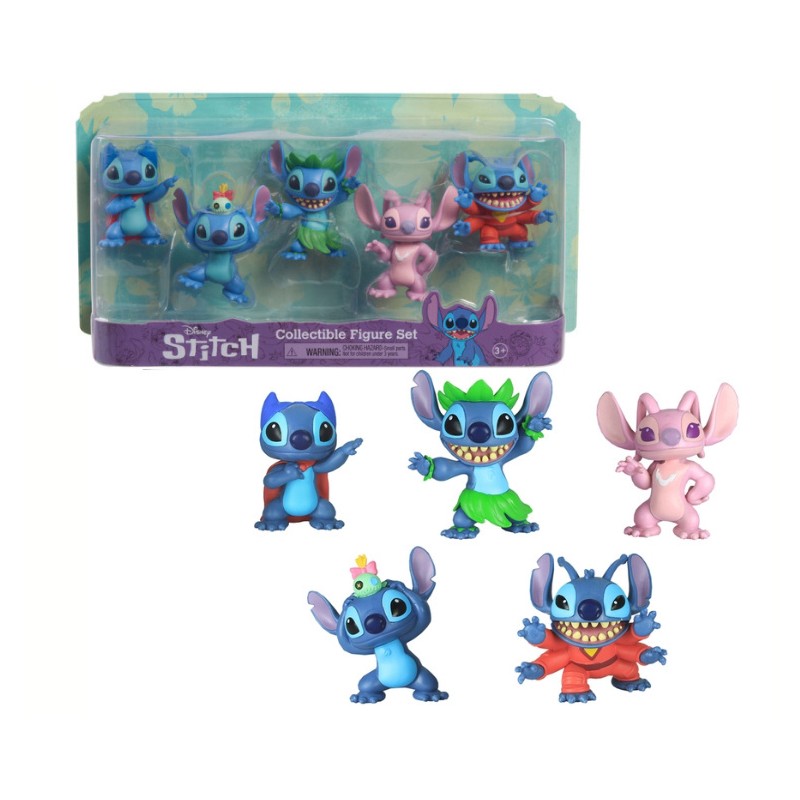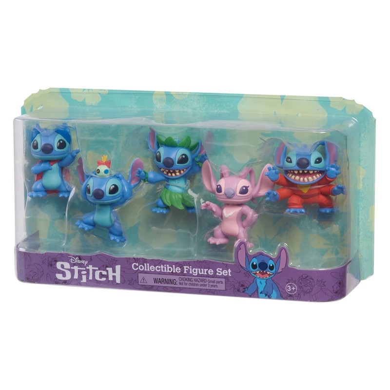 W opakowaniu znaleźć można Stitcha w wersji superbohatera, kosmity, aniołka, tancerza Hula oraz podstawowej ze swoją ulubioną, własnoręcznie wykonaną laleczką Scrump. Wysokość jednej figurki wynosi ok. 6 cm.