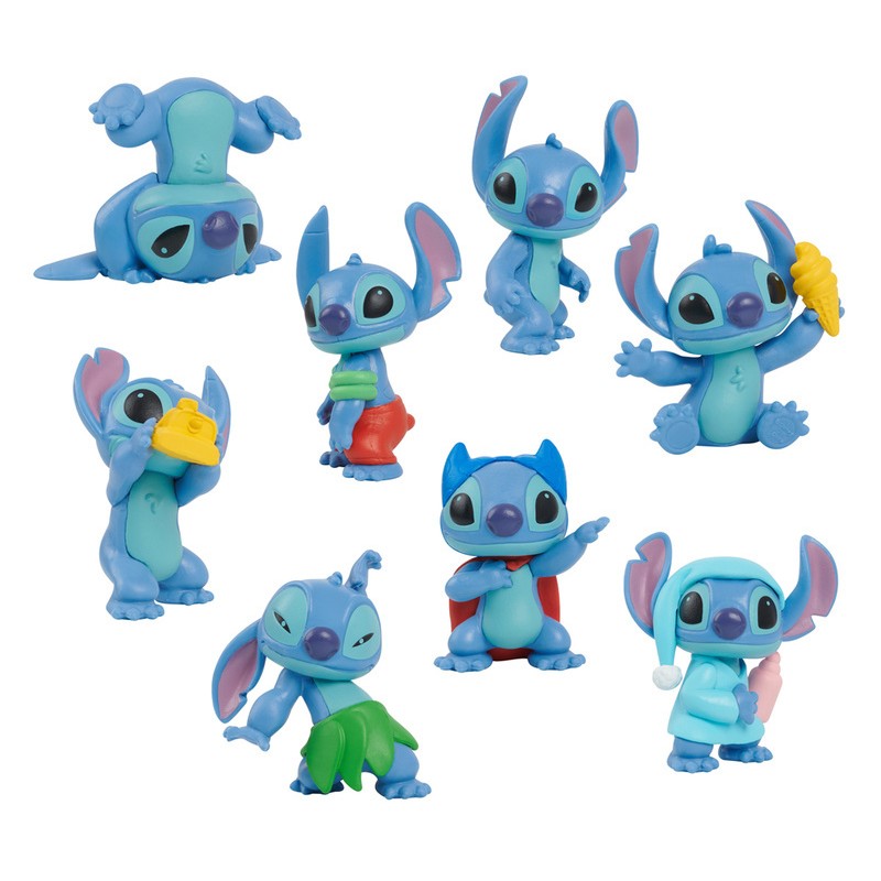 Zestaw 8 figurek uroczego Stitcha stanie się ciekawym uzupełnieniem domowej kolekcji! Każda z figurek została wiernie odwzorowana i przedstawia Stitcha z zachowaniem wszystkich cech wyglądu - w tym wypadku można jednak zobaczyć Stitcha w piżamie, robiącego zdjęcia, stojącego na głowie czy jedzącego lody. Zestaw figurek Stitch dedykowany jest dzieciom powyżej 3. roku życia. Wysokość jednej figurki wynosi ok. 5 cm.