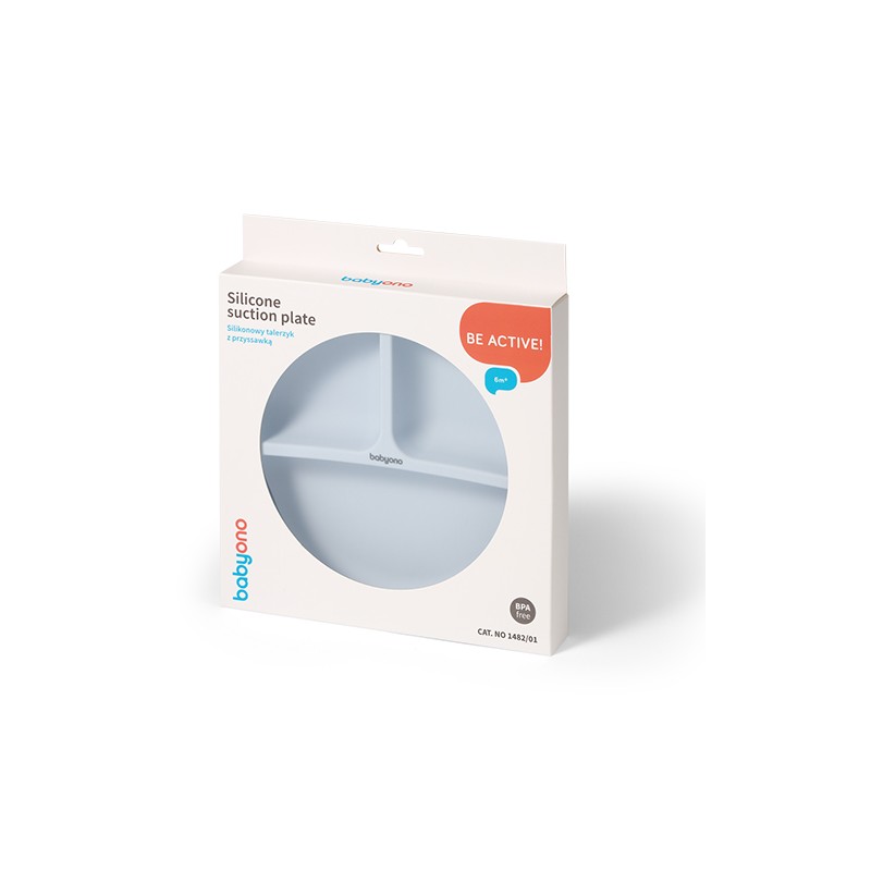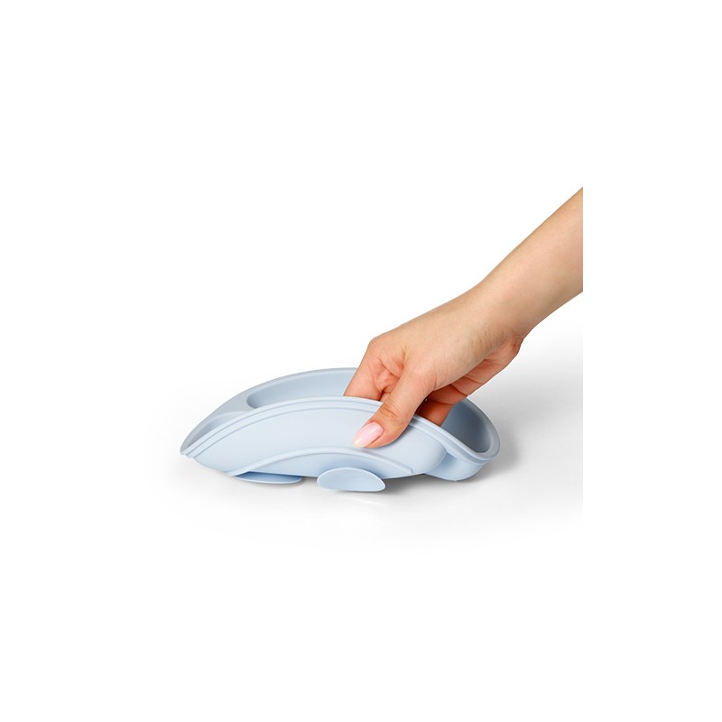 Przyssawka minimalizuje ryzyko rozlania lub przewrócenia jedzenia. Ergonomiczny kształt ułatwia samodzielne nabieranie pokarmu.Trzy praktyczne przegródki zachęcają do zróżnicowanego jedzenia. Wykonany z wysokiej jakości silikonu, talerzyk jest bezpieczny dla zdrowia i łatwy w czyszczeniu. Można go myć w zmywarce i podgrzewać w mikrofalówce.