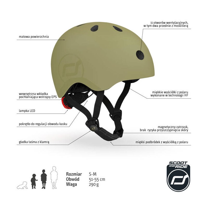 SCOOTANDRIDE Kask S-M dla dzieci 3+ Olive