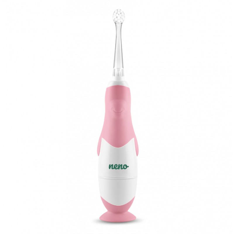 Neno Denti to szczoteczka elektryczna, stworzona z myślą o delikatnych dziąsłach i rosnących ząbkach maluchów. Posiada wyjątkowy kształt pingwinka, który zachęci do mycia zębów szczególnie starsze dzieci.