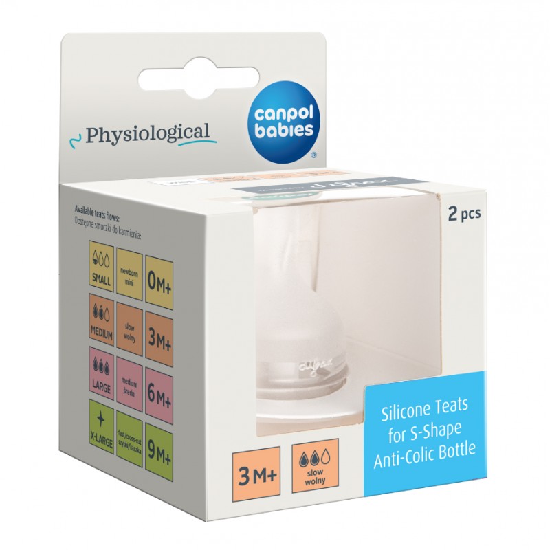 CANPOL Smoczek do butelki S-SHAPE M (wolny) 2szt.