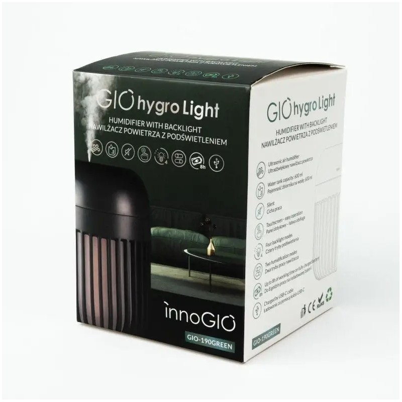 ULTRADŹWIĘKOWY NAWILŻACZ POWIETRZA Z LAMPKĄ GIOhygro LIGHT GREEN