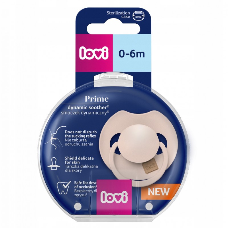 Dynamiczny smoczek uspokajający LOVI Prime jest bezpieczny dla odruchu ssania oraz nie zaburza rozwoju mowy i zgryzu. Dzięki unikalnej budowie z silikonu o różnej grubości, rozciąga się i kurczy zgodnie z rytmem ssania dziecka. Dzięki temu chroni jego odruch ssania i nie ma niekorzystnego wpływu na karmienie piersią.