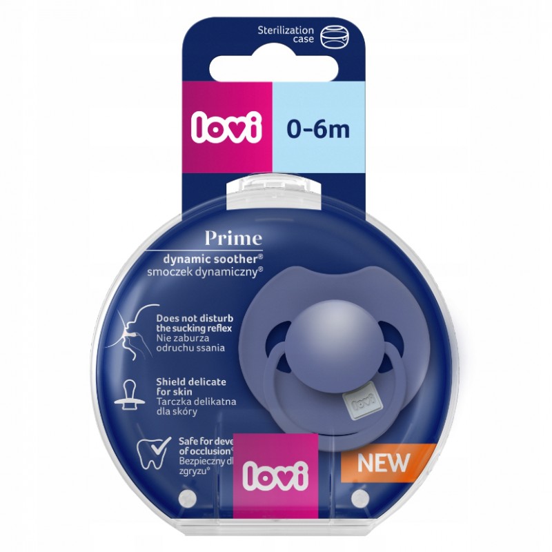 Dynamiczny smoczek uspokajający LOVI Prime jest bezpieczny dla odruchu ssania oraz nie zaburza rozwoju mowy i zgryzu. Dzięki unikalnej budowie z silikonu o różnej grubości, rozciąga się i kurczy zgodnie z rytmem ssania dziecka. Dzięki temu chroni jego odruch ssania i nie ma niekorzystnego wpływu na karmienie piersią.