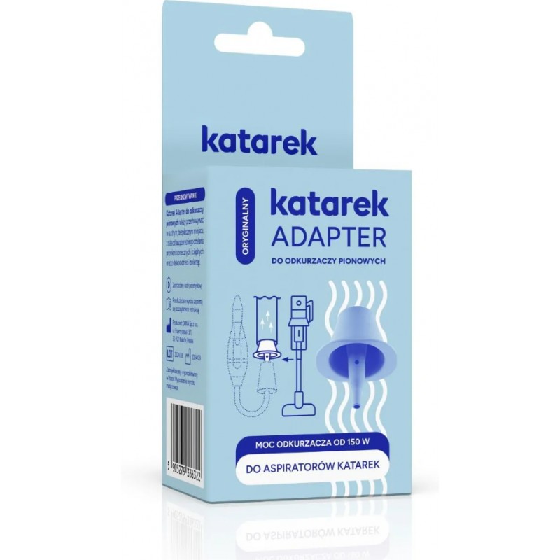 Katarek Adapter do odkurzaczy pionowych jest wyposażeniem wyrobu medycznego wielokrotnego użytku i pozwala na łatwe podłączenie aspiratorów Katarek do większości odkurzaczy pionowych. Katarek Adapter do odkurzaczy pionowych najlepiej współpracuje z odkurzaczami pionowymi o mocy przynajmniej 150 W, ale nie wyklucza to poprawnej pracy z modelami odkurzaczy pionowych o mniejszej mocy.